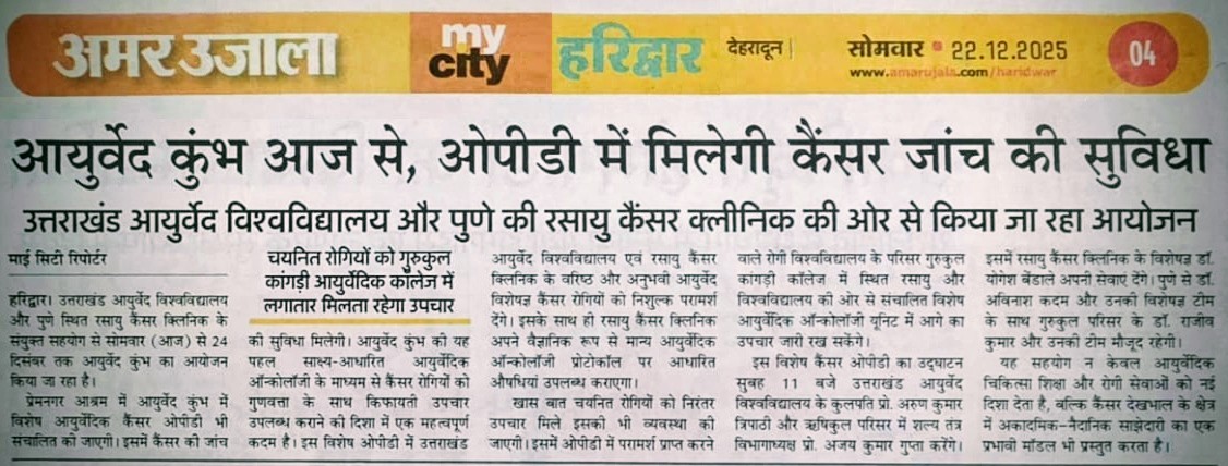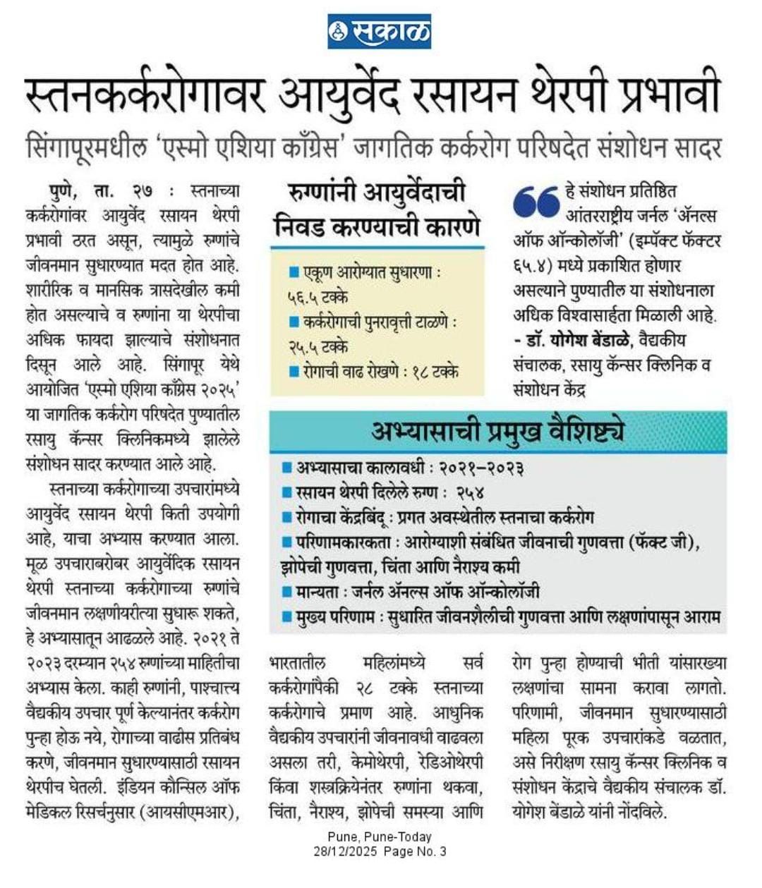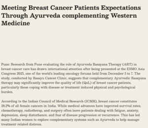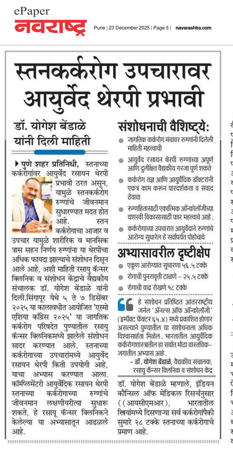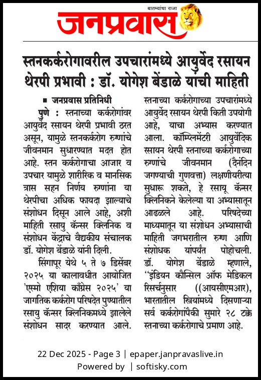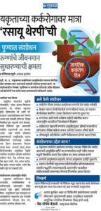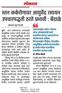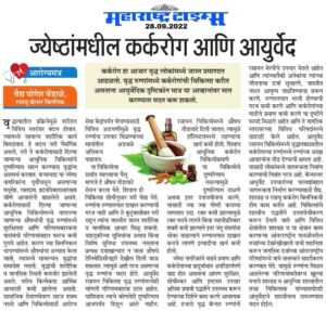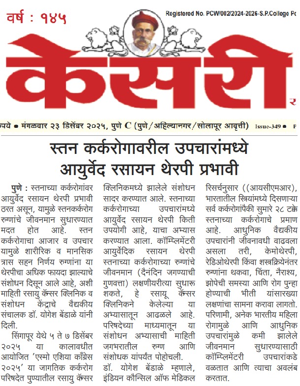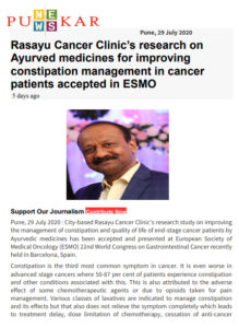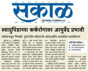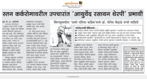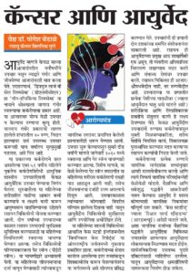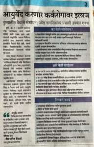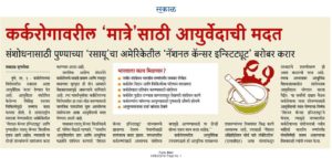 - Enhancement of immunity in cancer patients by Ayurveda-Â Sakal, November 2017