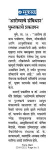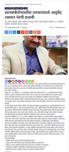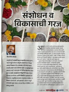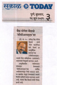 - Selection as Member of the SFC of CCRAS, New Delhi – Sakal – Pune Today, June 16, 2021