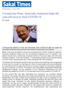 - COVID-19 Article – Sakal Times, June 2020