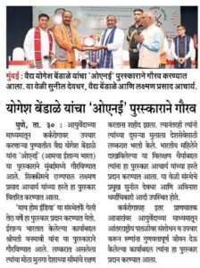 - Dr.Yogesh Bendale nominated to SFC in Ayurveda Central Research Body – Maharashtra Times, June 20, 2021
